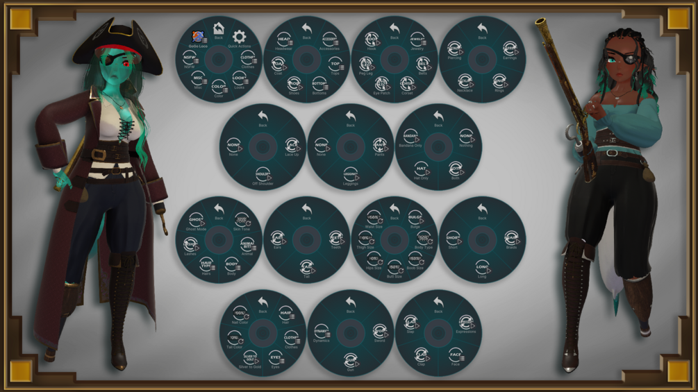 - Accessories: Belts, Corset, Eye Patch, Peg Leg, Hook