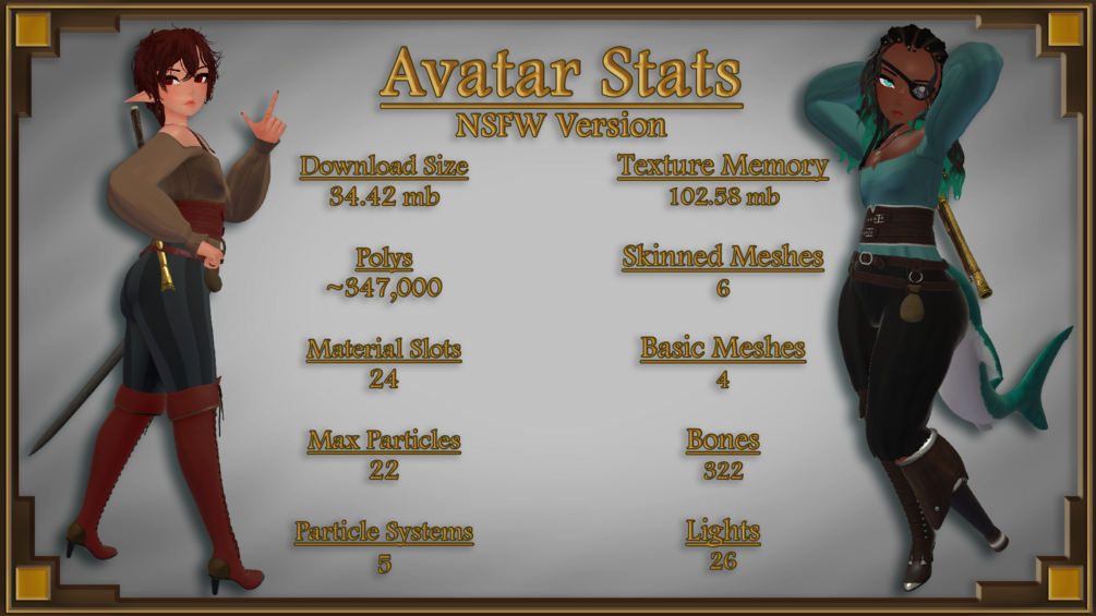 - No reselling or distributing of this avatar (Gumroad, Payhip and Jinxxy are the ONLY official pages for it)